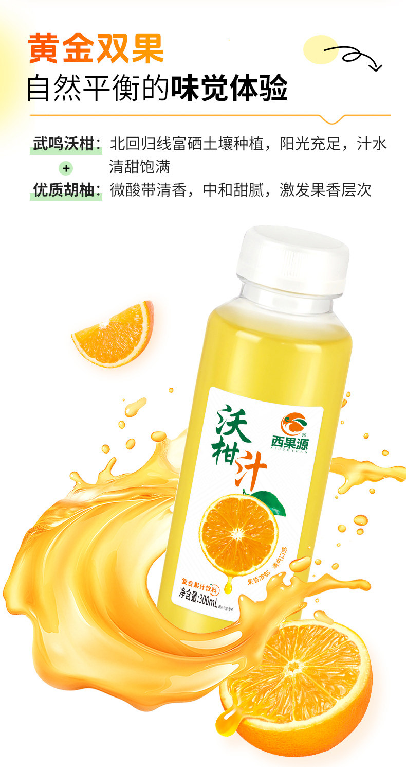 【15瓶300ml】西果源沃柑汁0脂肪0蛋白果汁pet塑料瓶装饮料整箱